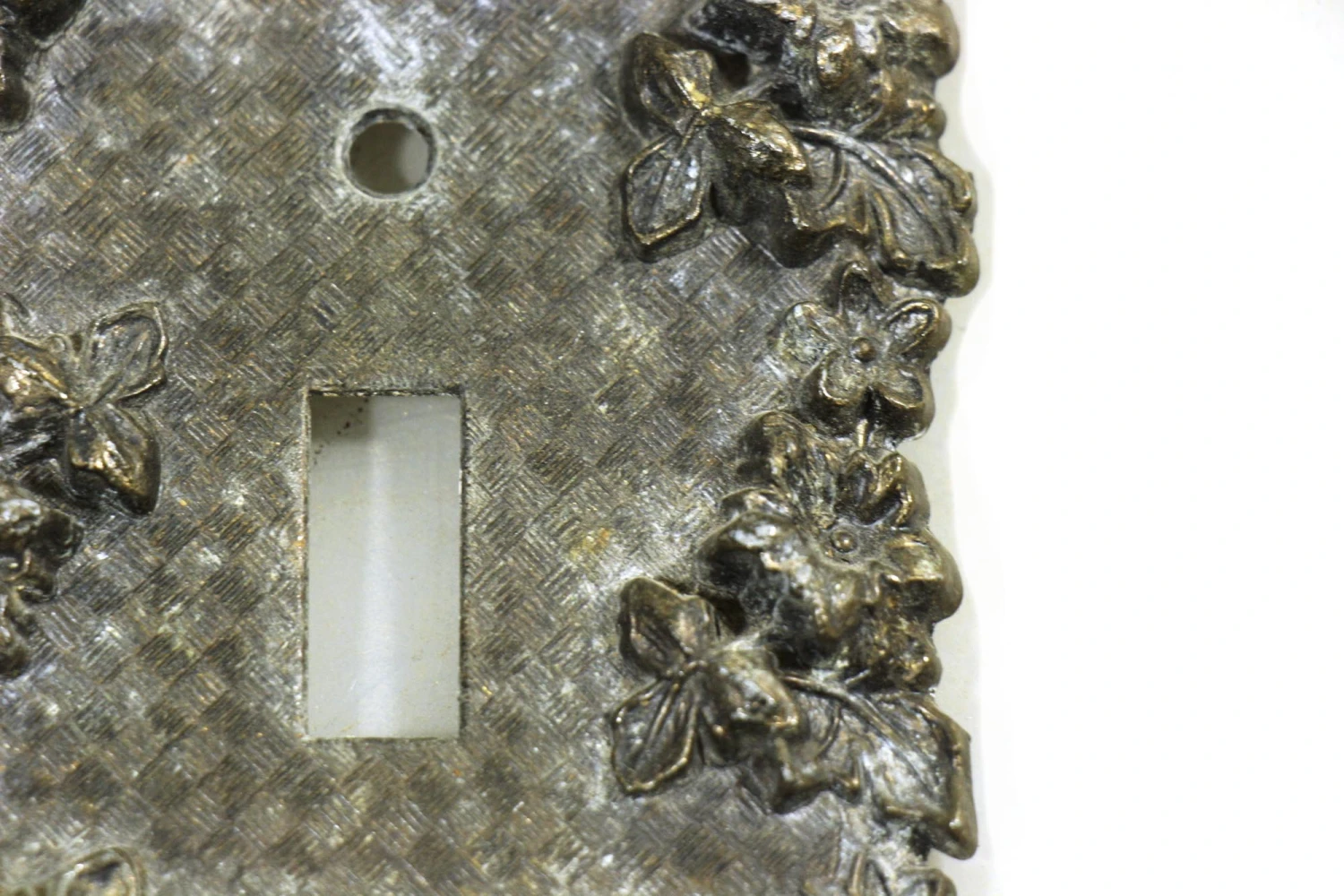 Floral brass cover for a single light switch. Patinas vary, please see photos. Priced each.