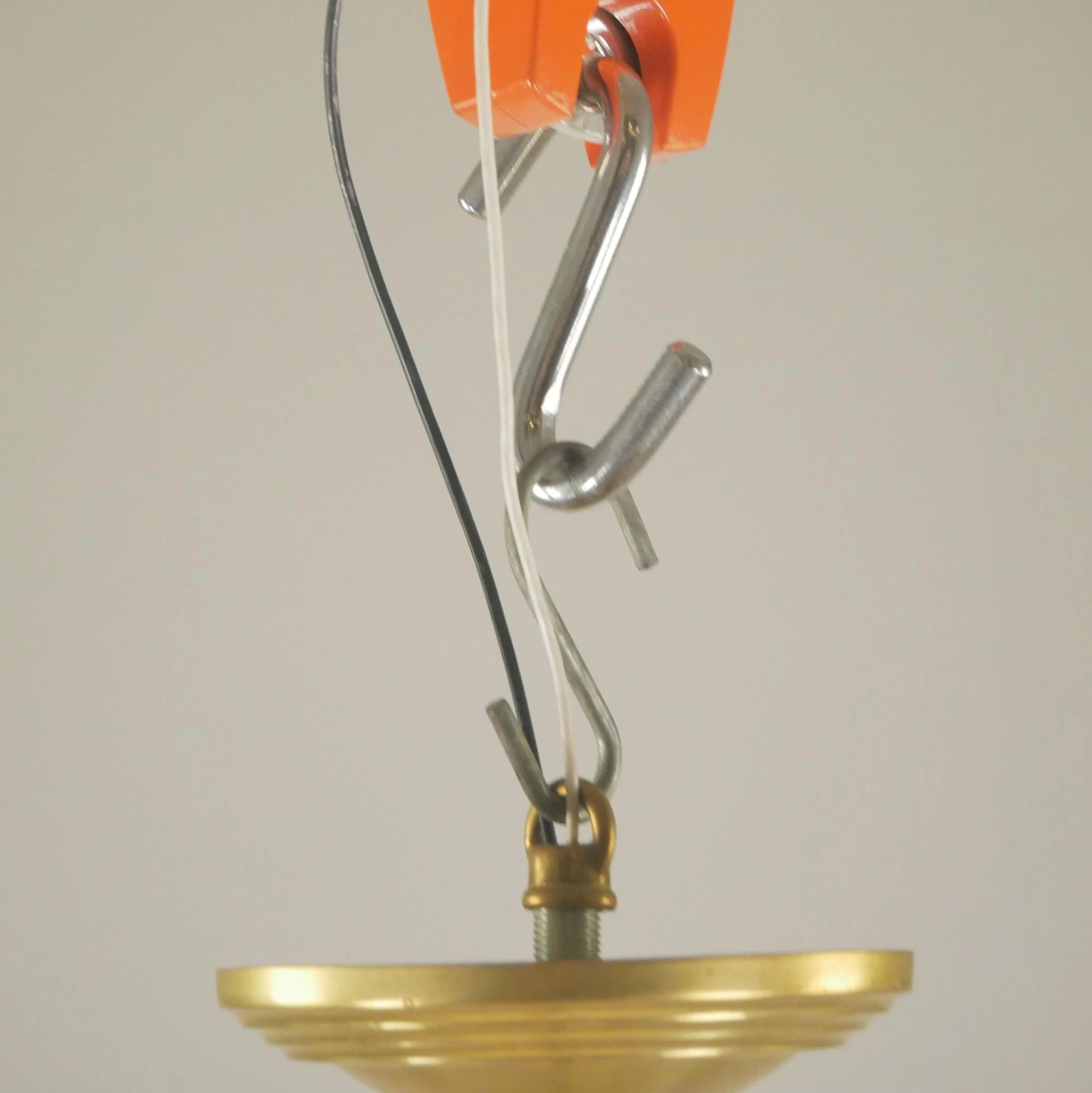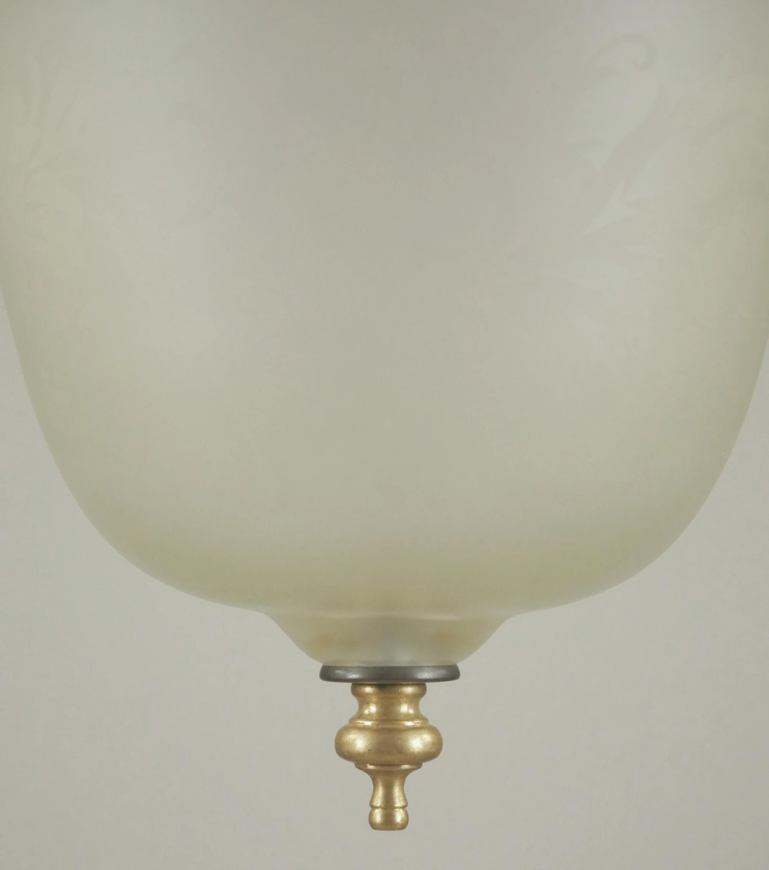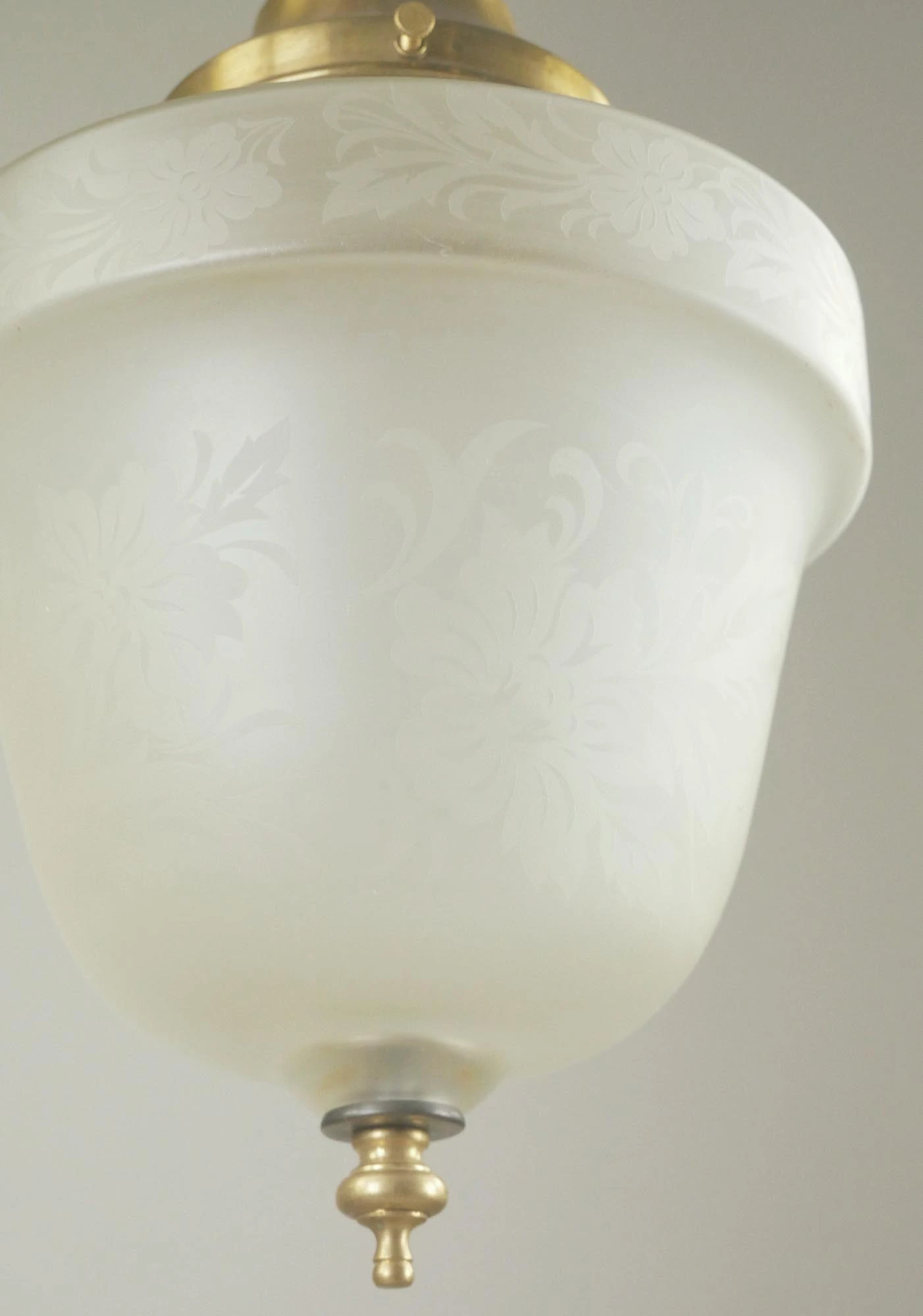 Vintage Floral Etched Glass Globe Brass Pole Pendant Light