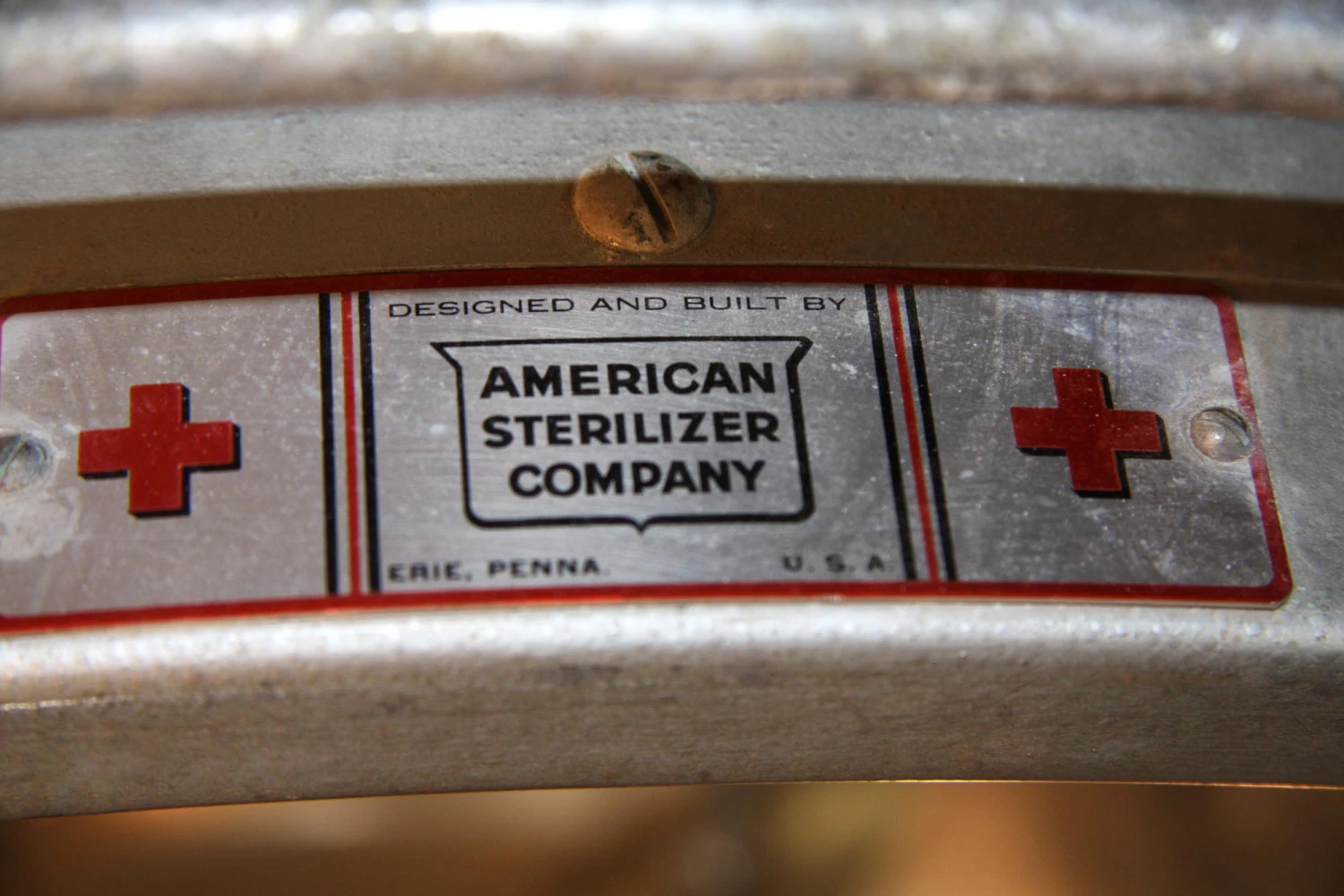Huge oversized vintage surgery light with a stainless steel construction with swivel head. Made by American Sterilizer Company, Erie Penna., U.S.A. Sold as is.
