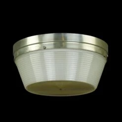 Vintage Mid Century Brushed Steel Prismatic Glass Flush Mount Light