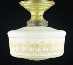 Vintage Orange Ornate White Globe Brass Fitter Semi Flush Mount Light