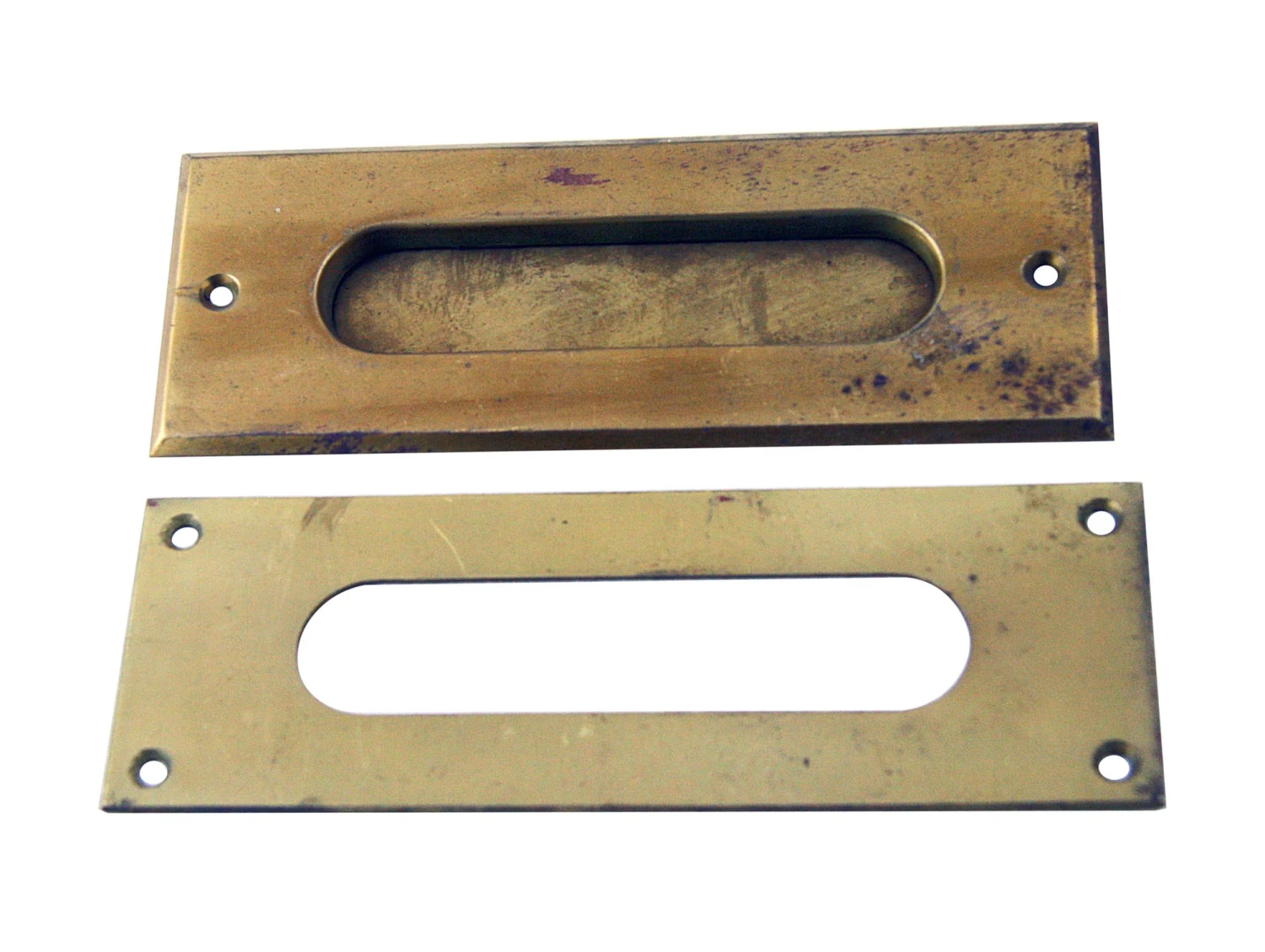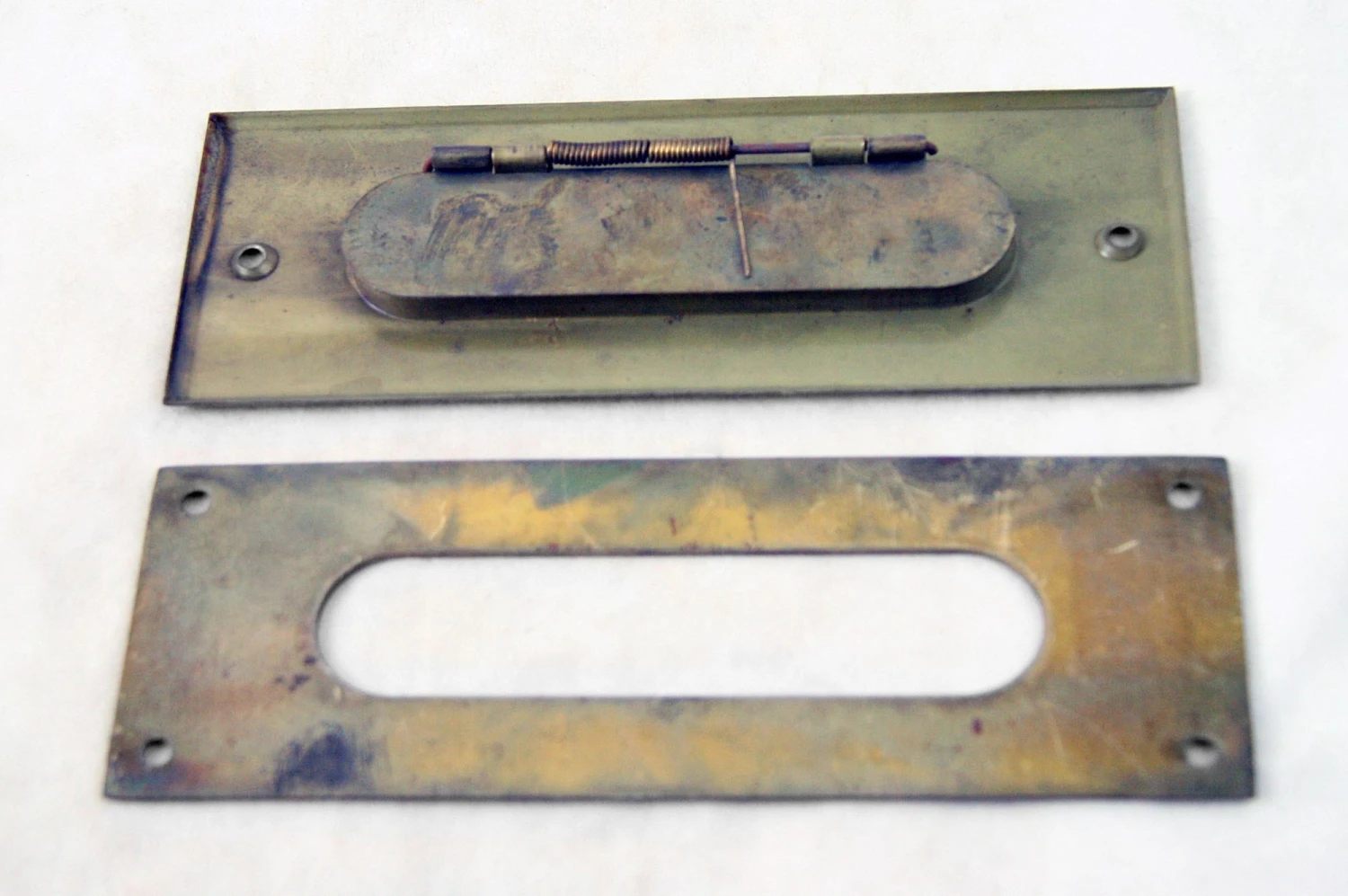 Simple vintage cast brass mail slot set. These are old new stock and have never been used. Priced per set.