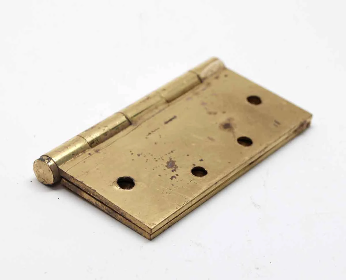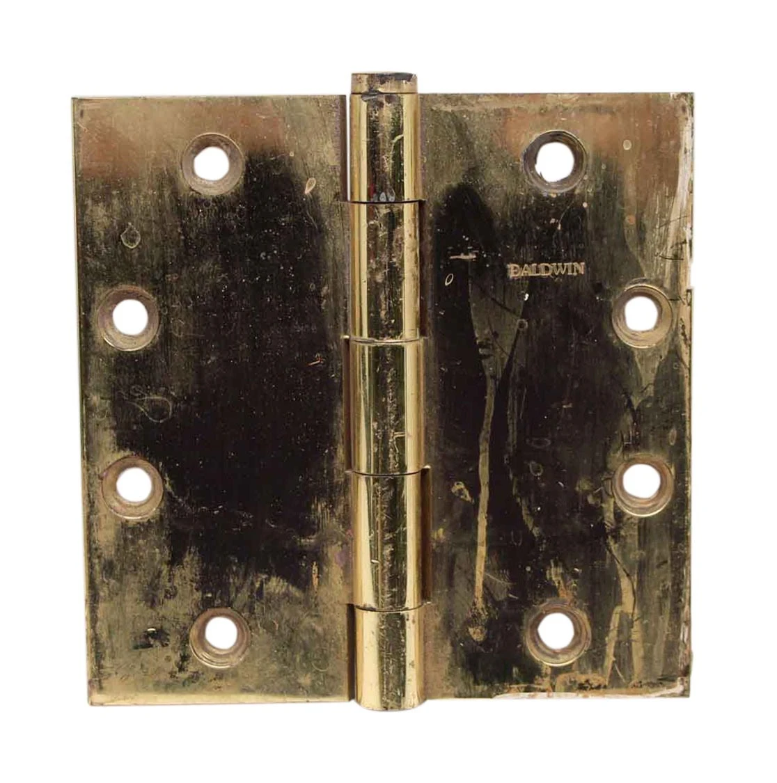 Baldwin signed solid brass flat tip standard vintage door hinge with a polished finish, template hole pattern, and five knuckles. Priced each.