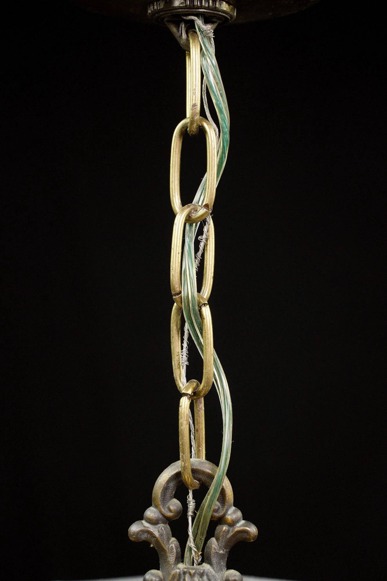 Be the first to review “Vintage Red & Tan Leaded Stained Glass Brass Chain Pendant Light” Cancel reply