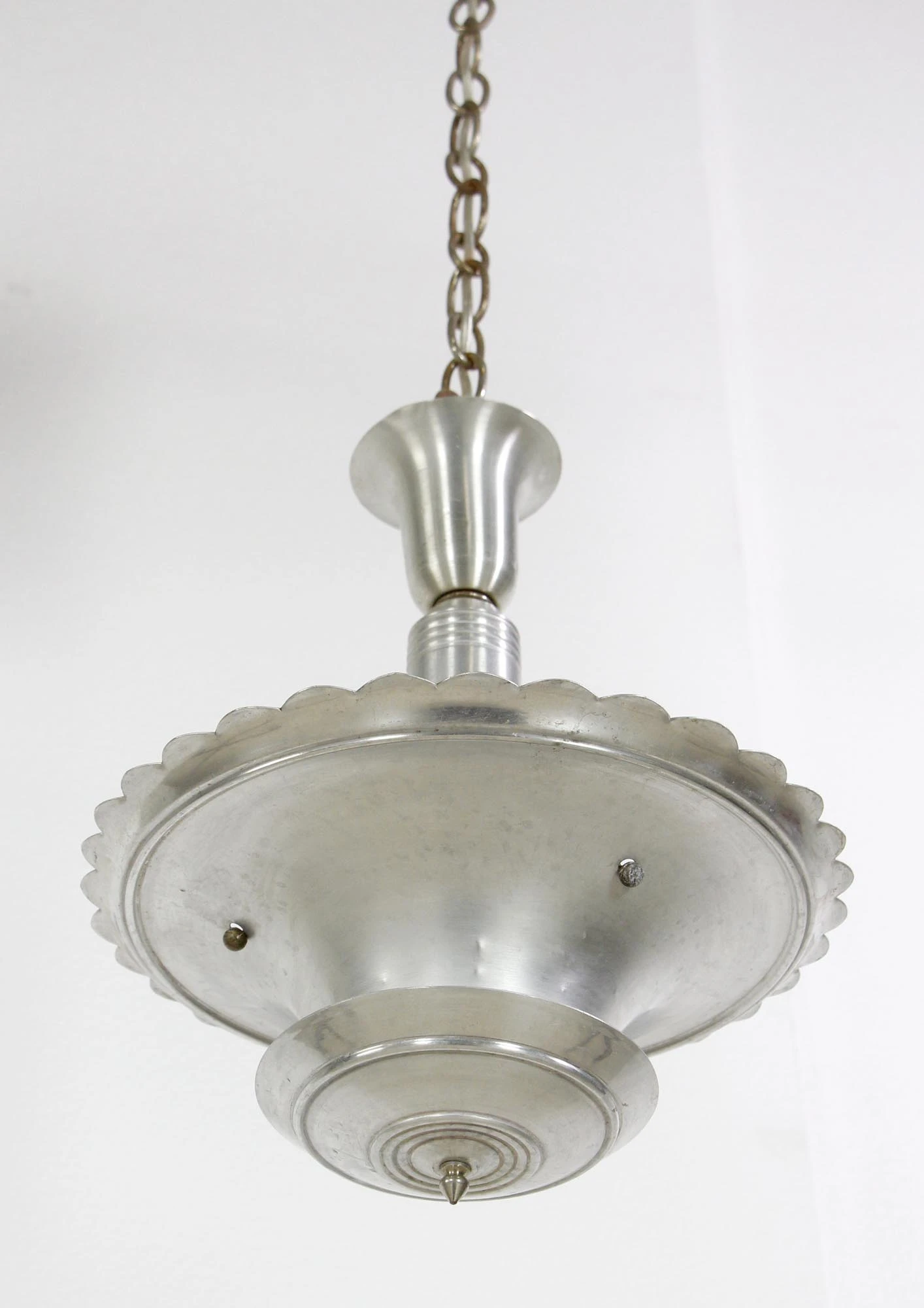 Vintage Scalloped Edge Aluminum Art Deco Pendant Light