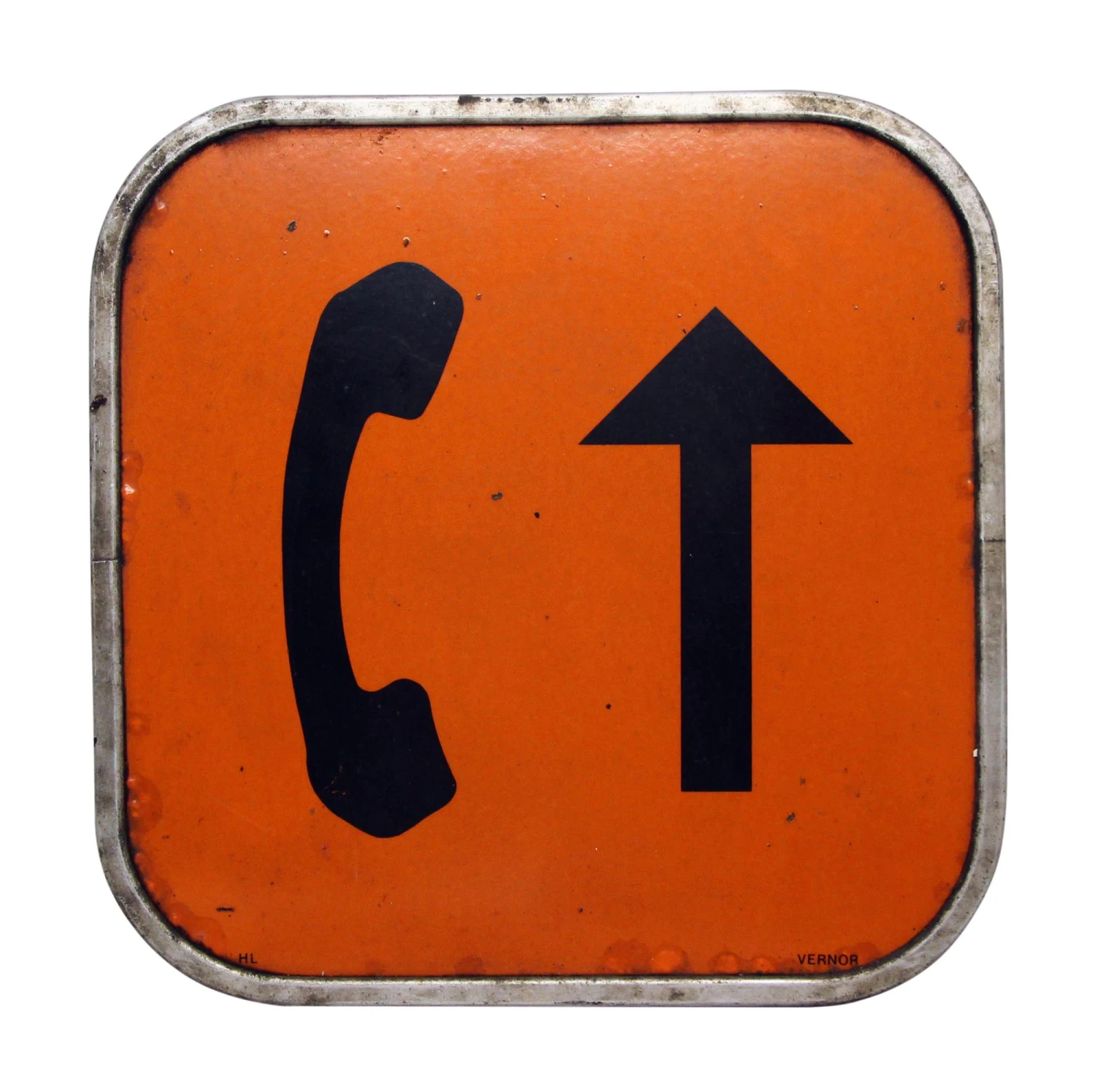 Orange and black telephone sign. Stamped Vernor. The back is stamped Martin International. Priced each.