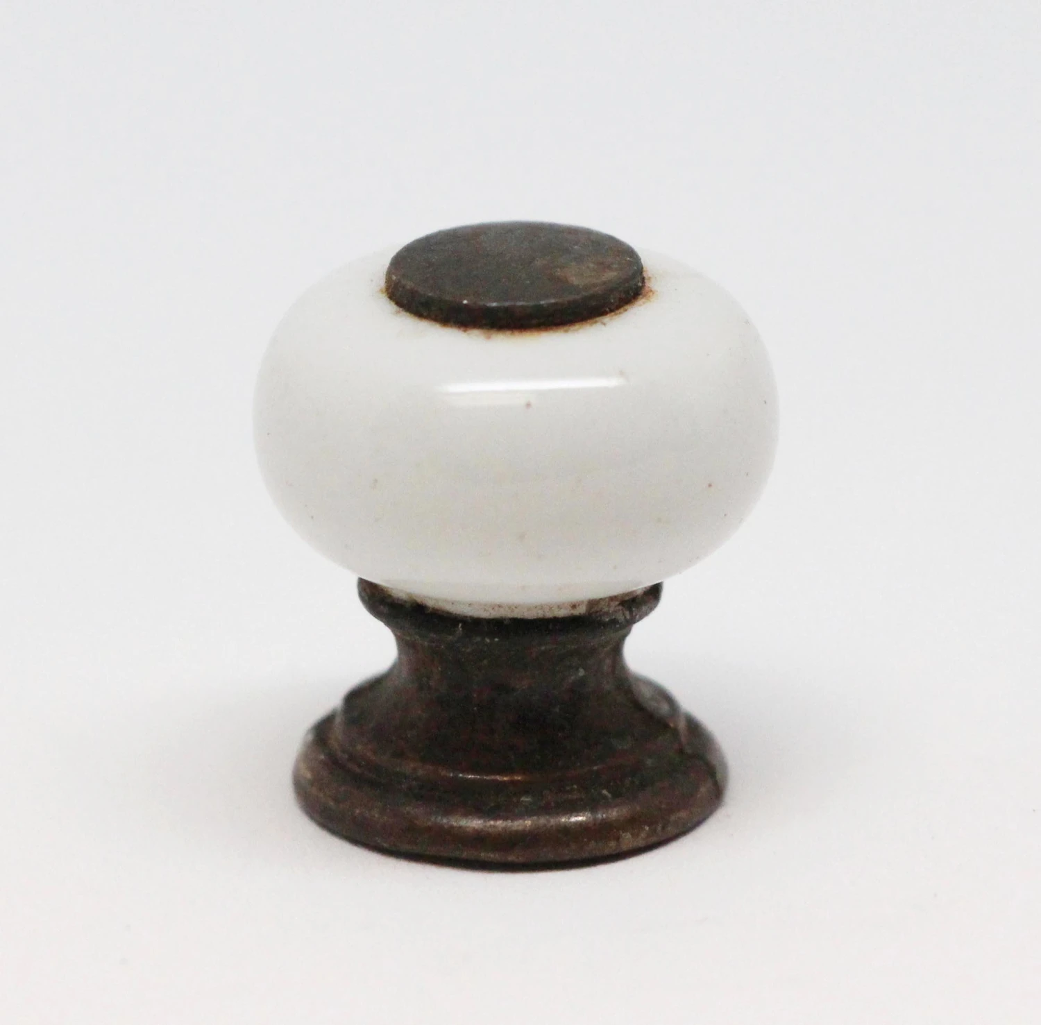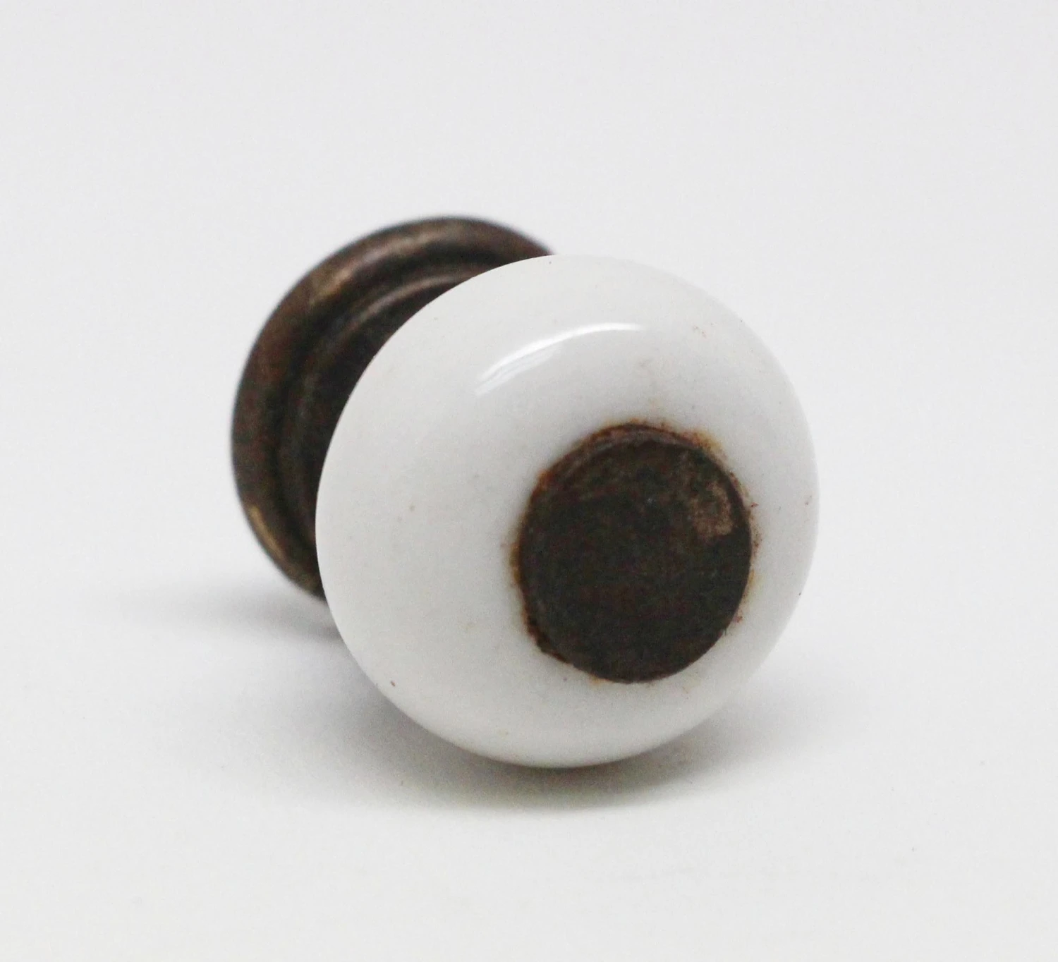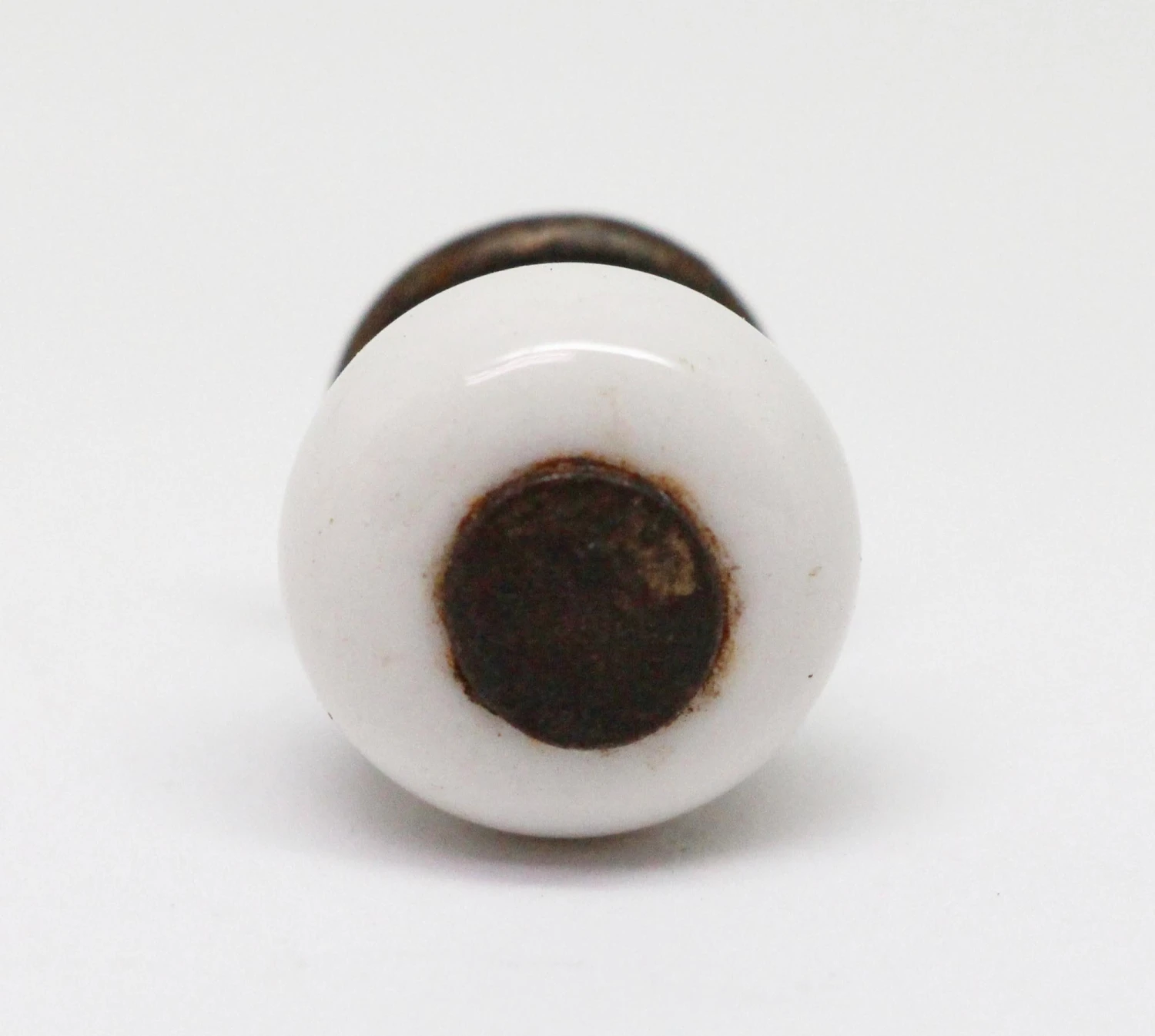 Petite white milk glass cabinet or drawer knob. Good condition with appropriate wear from age. Priced each.
