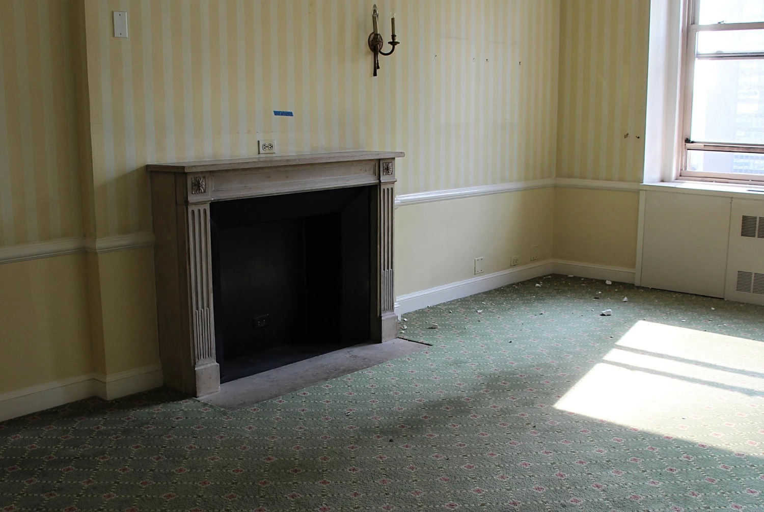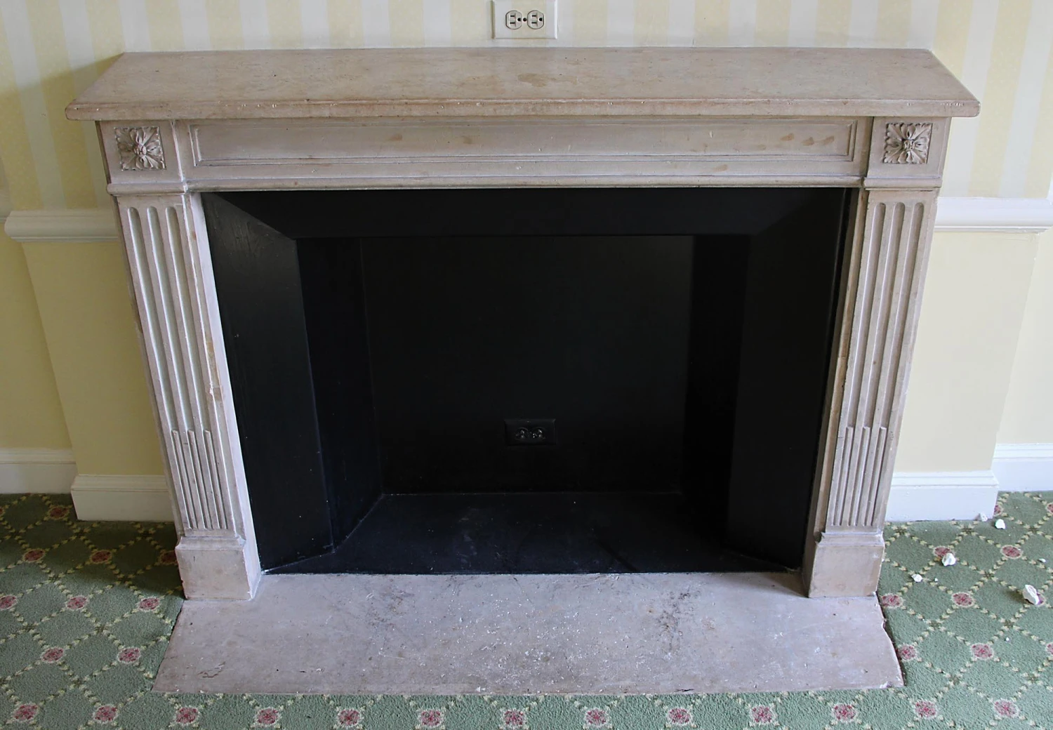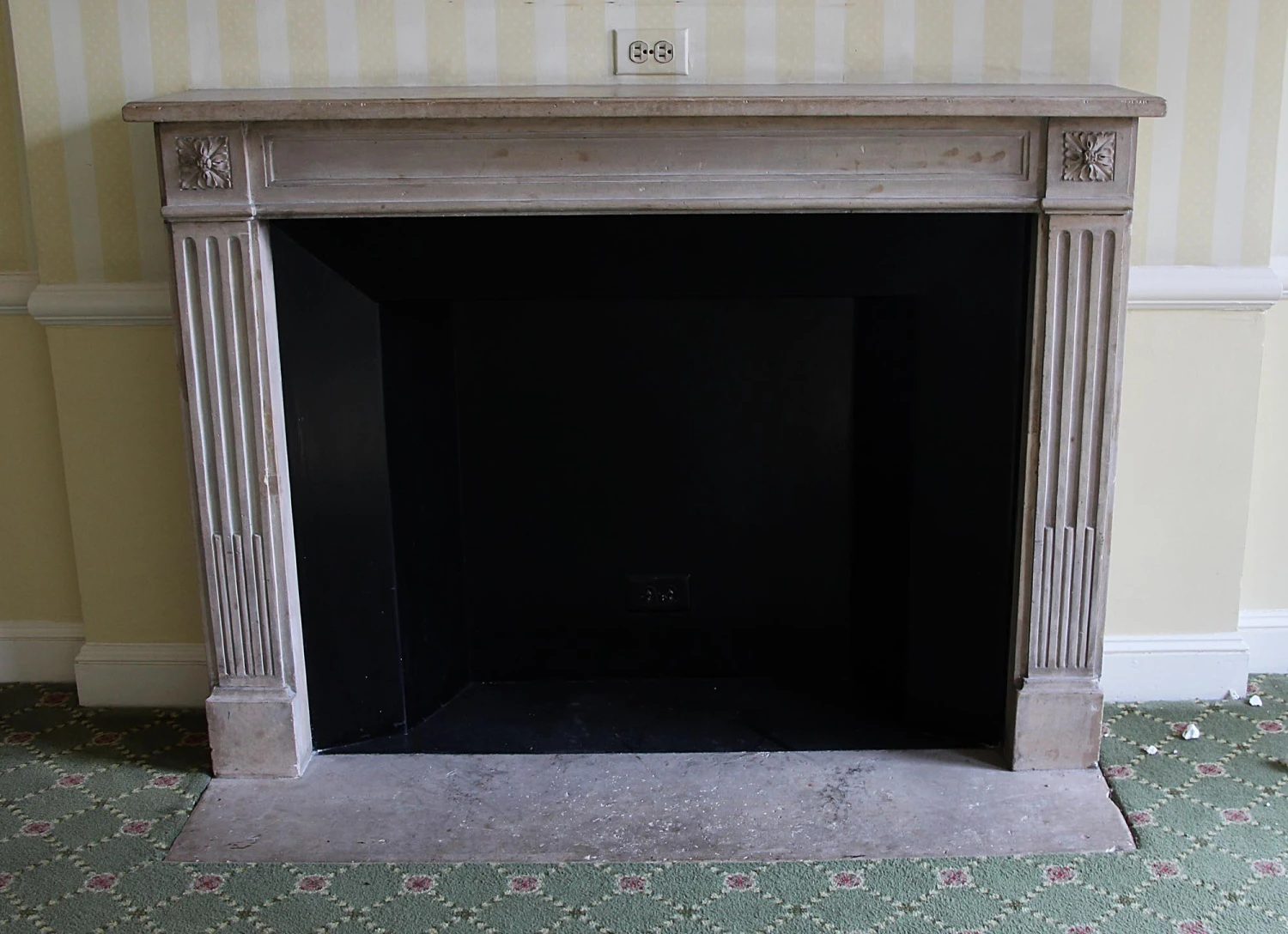 This French limestone, French Regency style mantel is exceptionally simple, with hand-carved floral corner motifs and fluted carvings on the jambs. This mantel was imported from France to decorate the Waldorf Astoria Hotel in NYC, which opened on Park Avenue October 1, 1931. Original to suite 25Y, a Waldorf Astoria authenticity card is included with your purchase. The entire piece is in very good condition with wear consistent with its age and is on display in the showroom of our flagship store located at 333 W 52nd St. NYC.