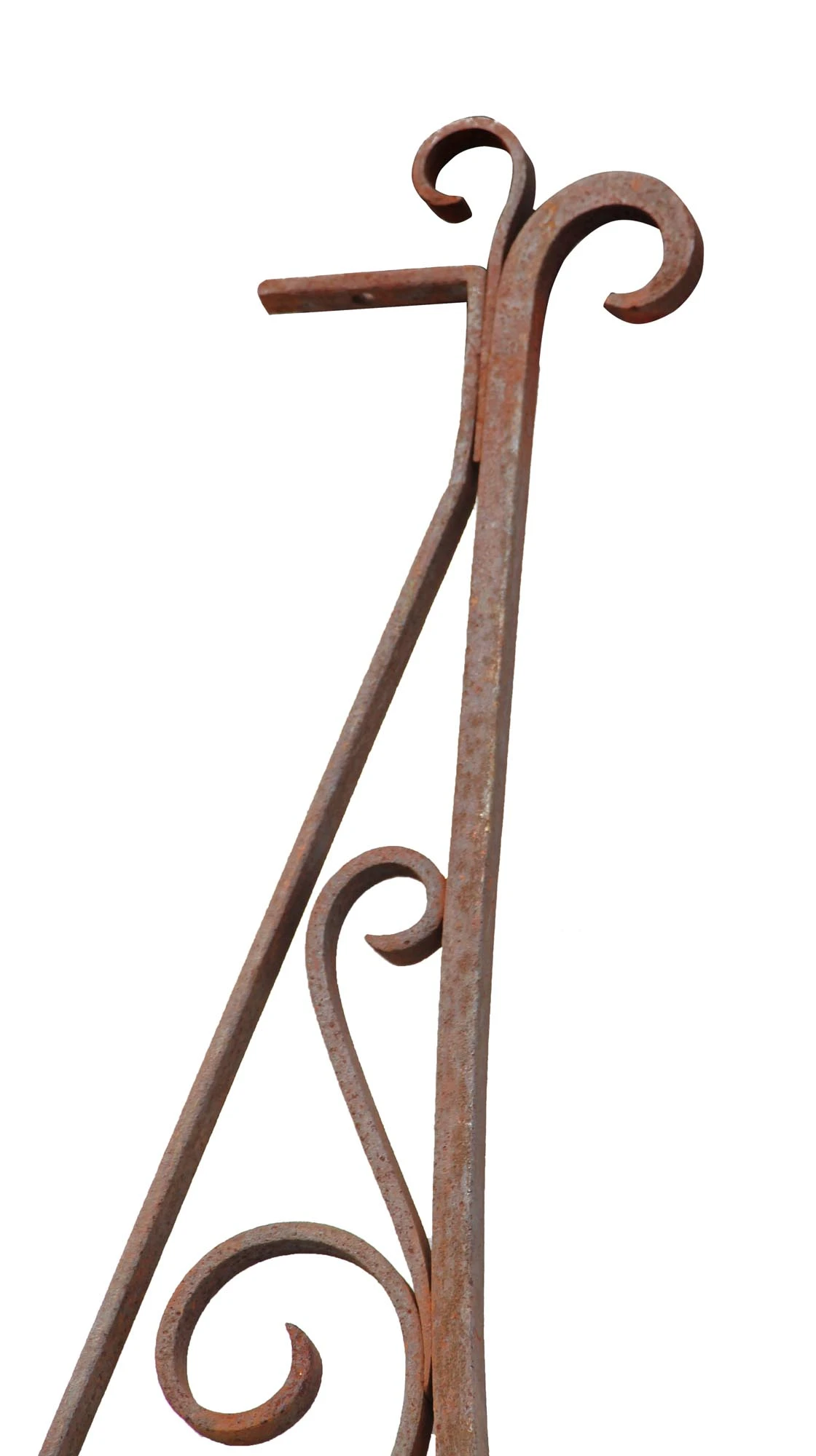 Huge hand wrought Victorian scrolled sign bracket with rivets and bands. It has an overall rust patina.
